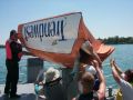 A very strange boat "on" the course