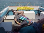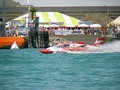 U-1 - Miss Budweiser Crew on dive boat (Tango 1) watches Miss Budweiser during her spin out in the start of the final heat. |